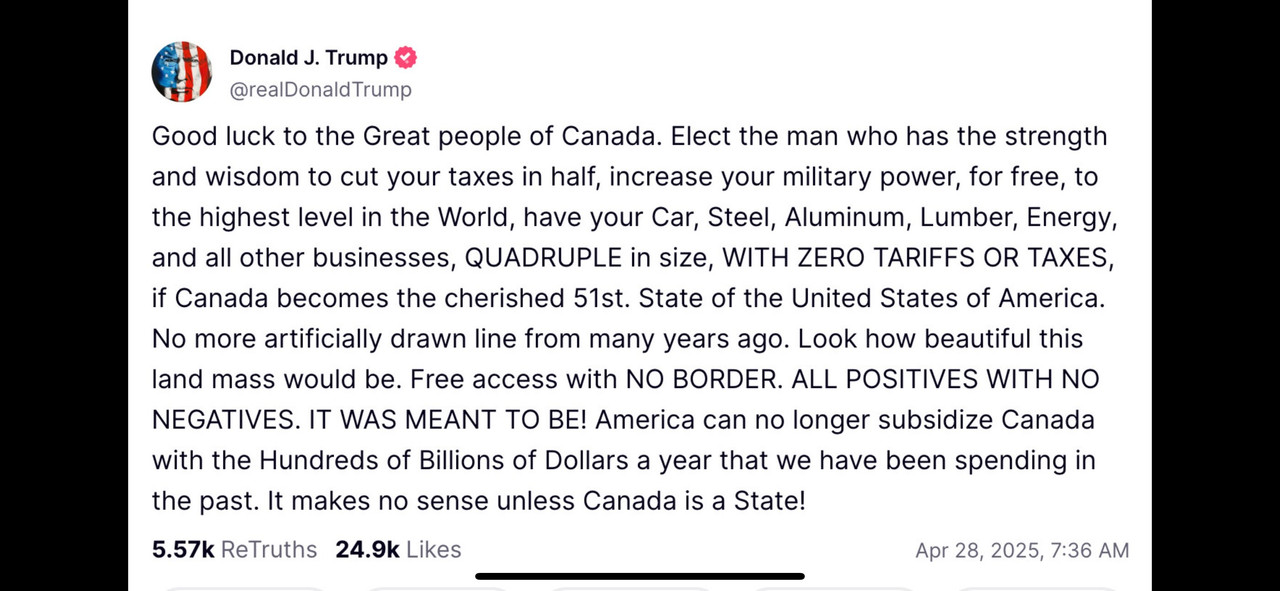 This is from today Apr. 28, 2025, the day of our Federal Election.