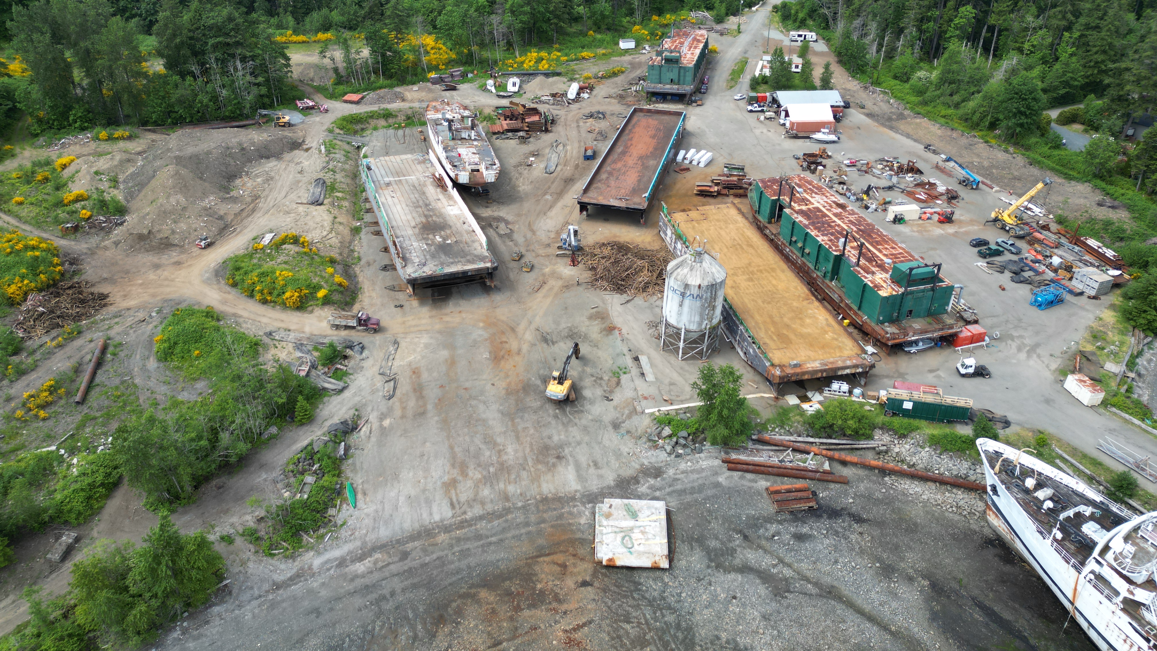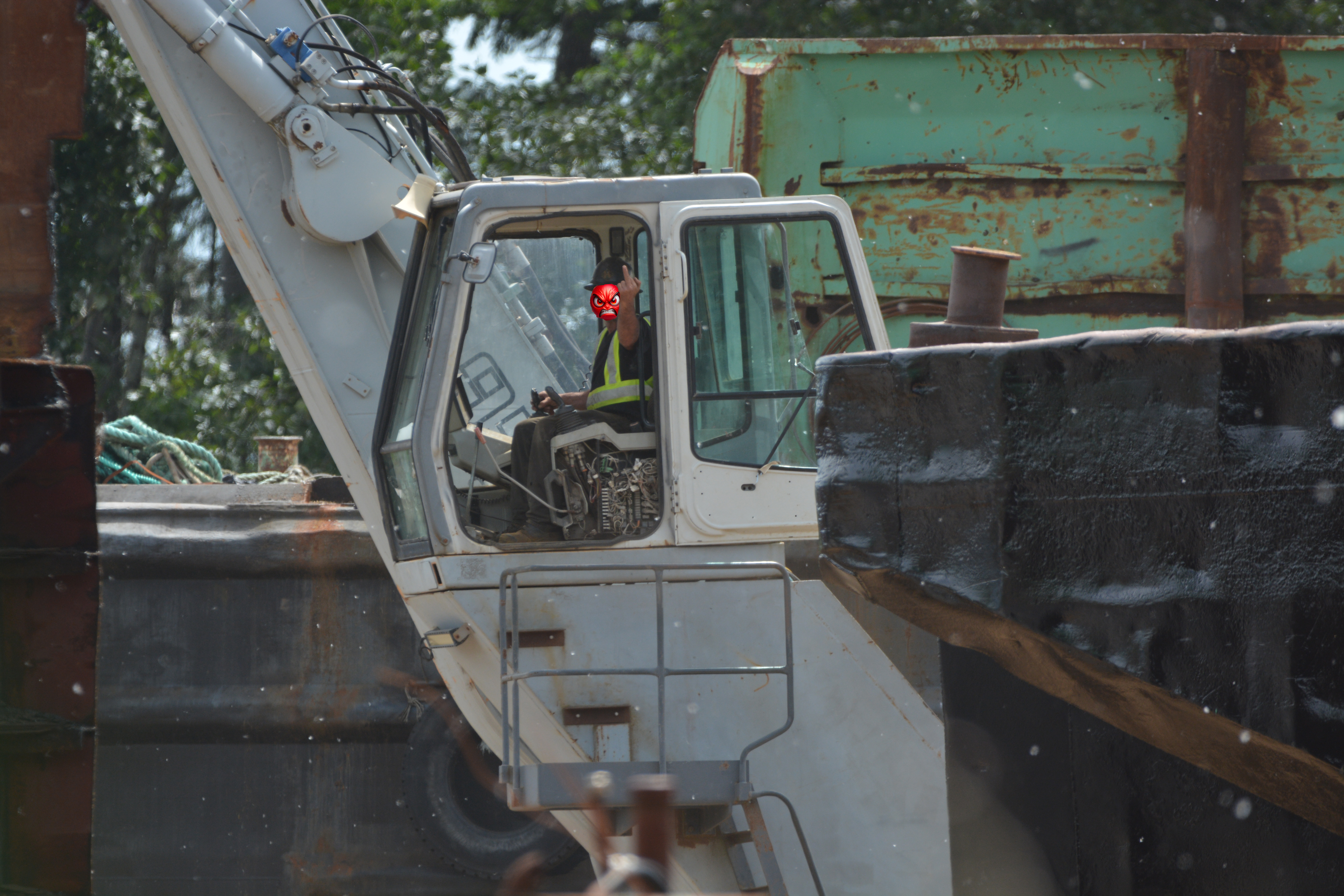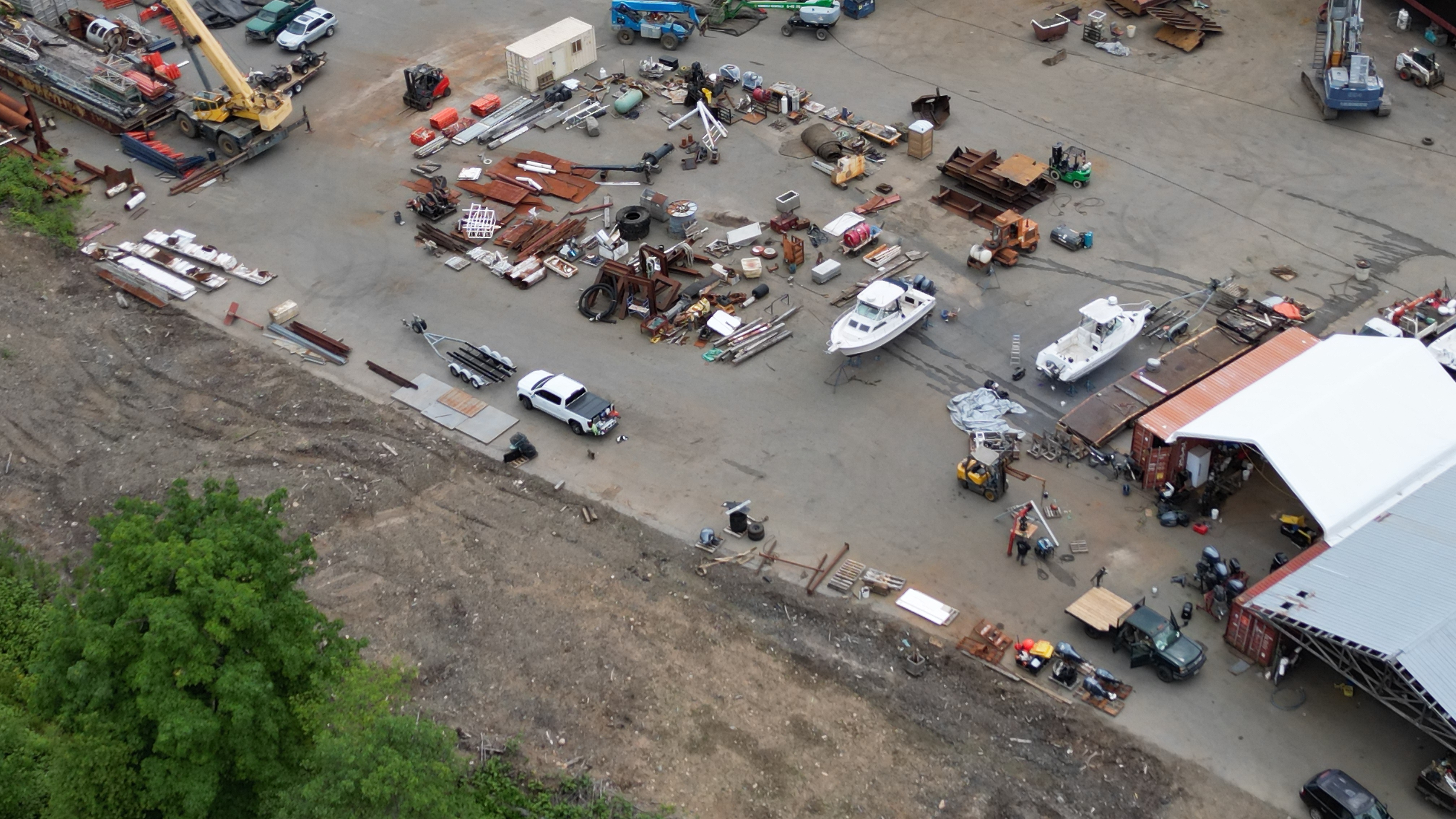 They have stored boat motors, etc. at the edge of the asphalt and now they are storing more items at the edge. Anyone doing business with this filthy polluting foreign owned company should be shamed.