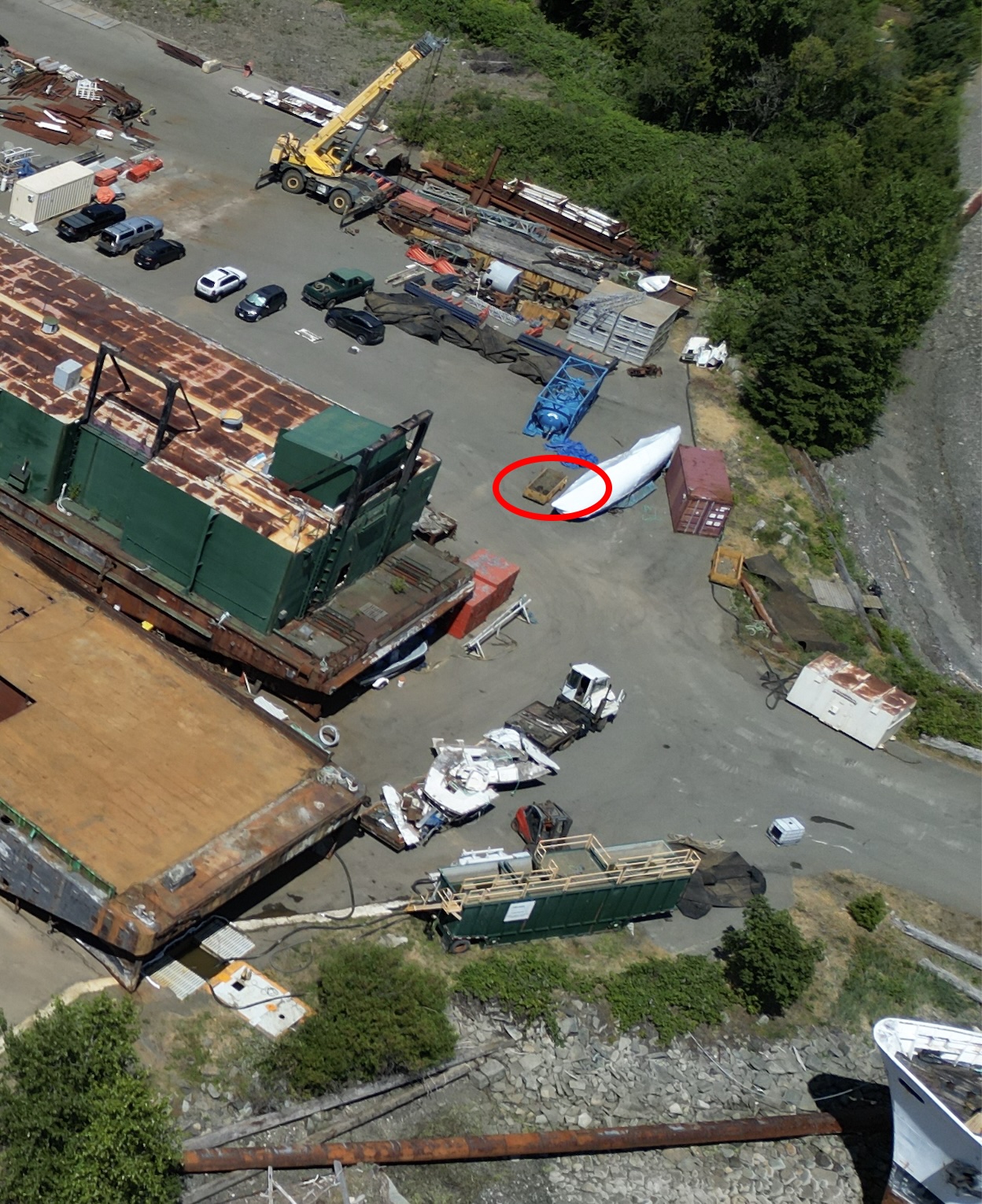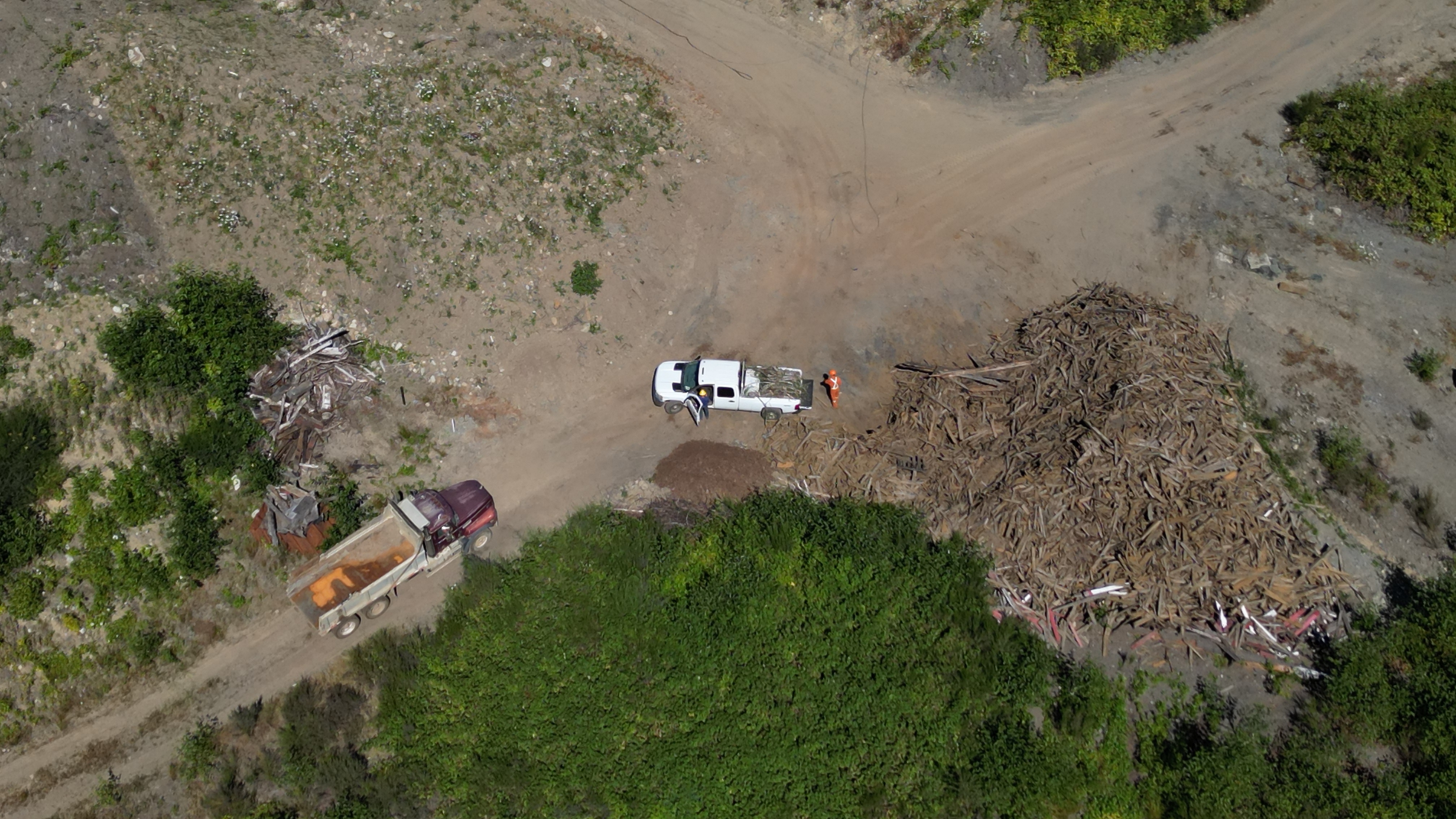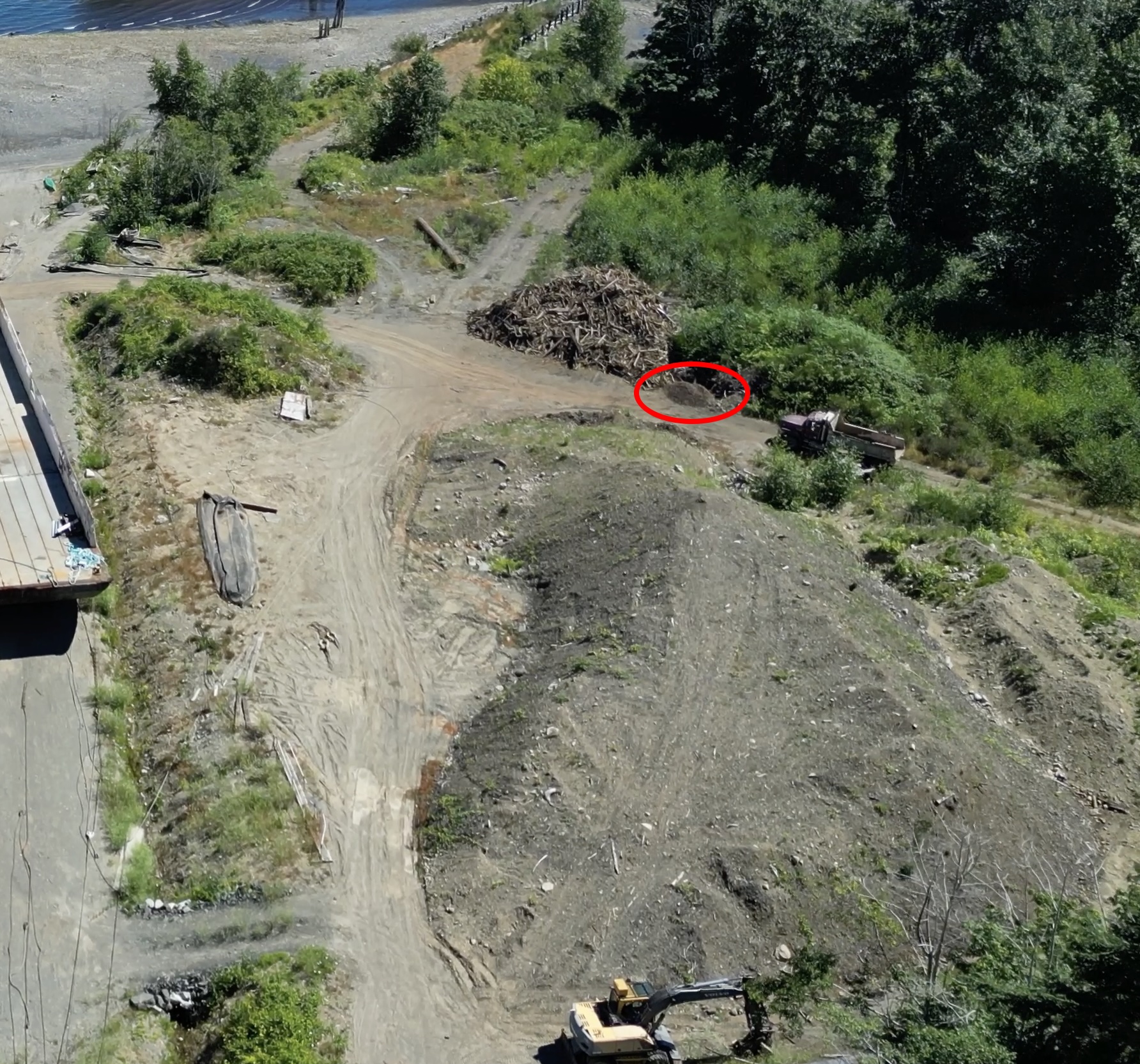 Spotted this white pickup going into DWR loaded up with wood debris. Watched as it was unloaded and added to the pile of wood from the rust bucked barge. Also, noticed a suspicious pile added and wonder if it’s from one of those containers they have been storing shavings, etc.