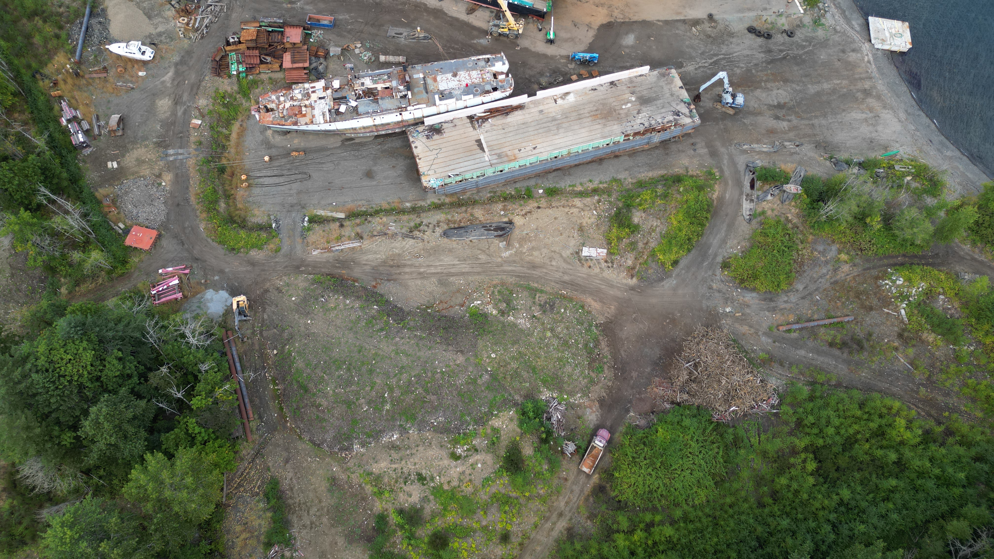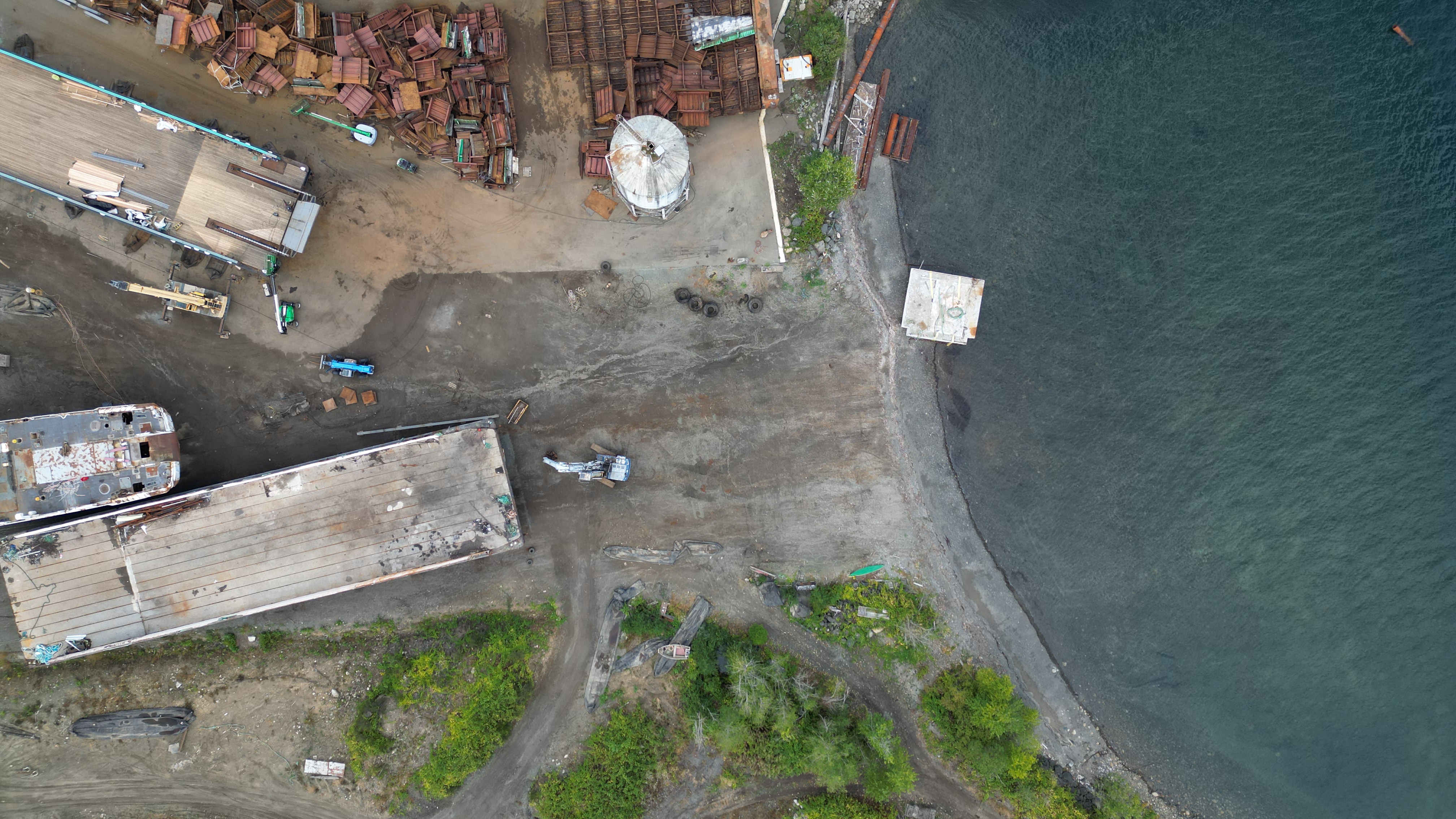 You can see where the rain flowed down on the bare soil to the ocean from the last few days. Nothing flowing down the soil is filtered – it runs straight into the marine environment. They sweep that shit off the asphalt and grind it up into the bare soil with all the equipment. They intentionally choose the soil area to run all that equipment back and forth.