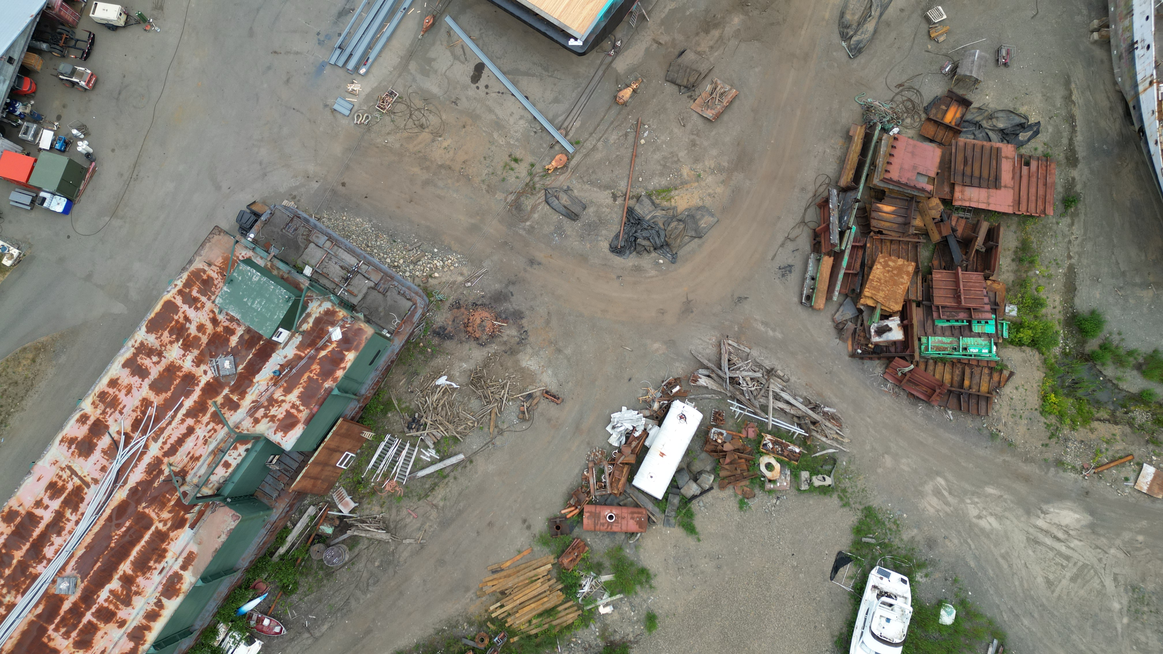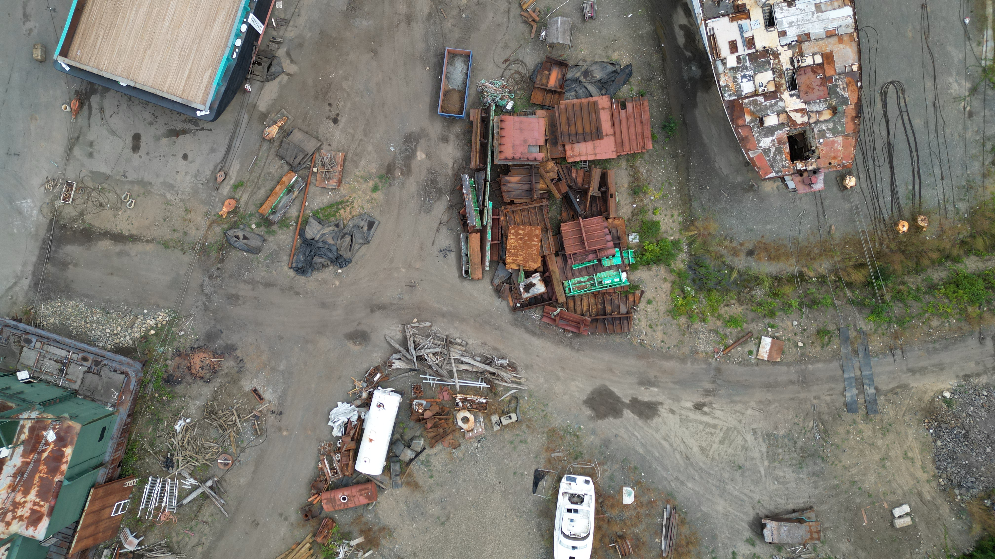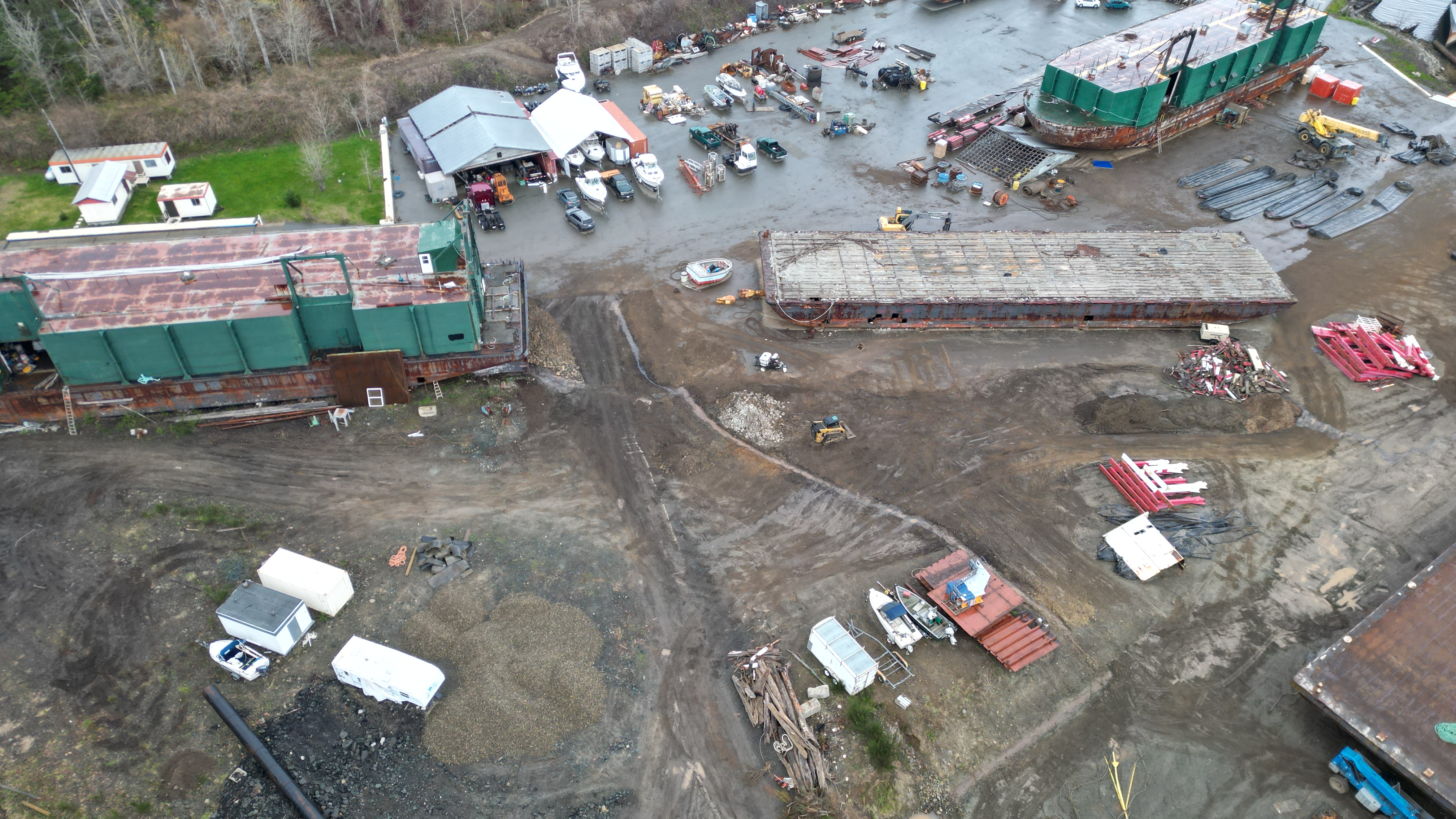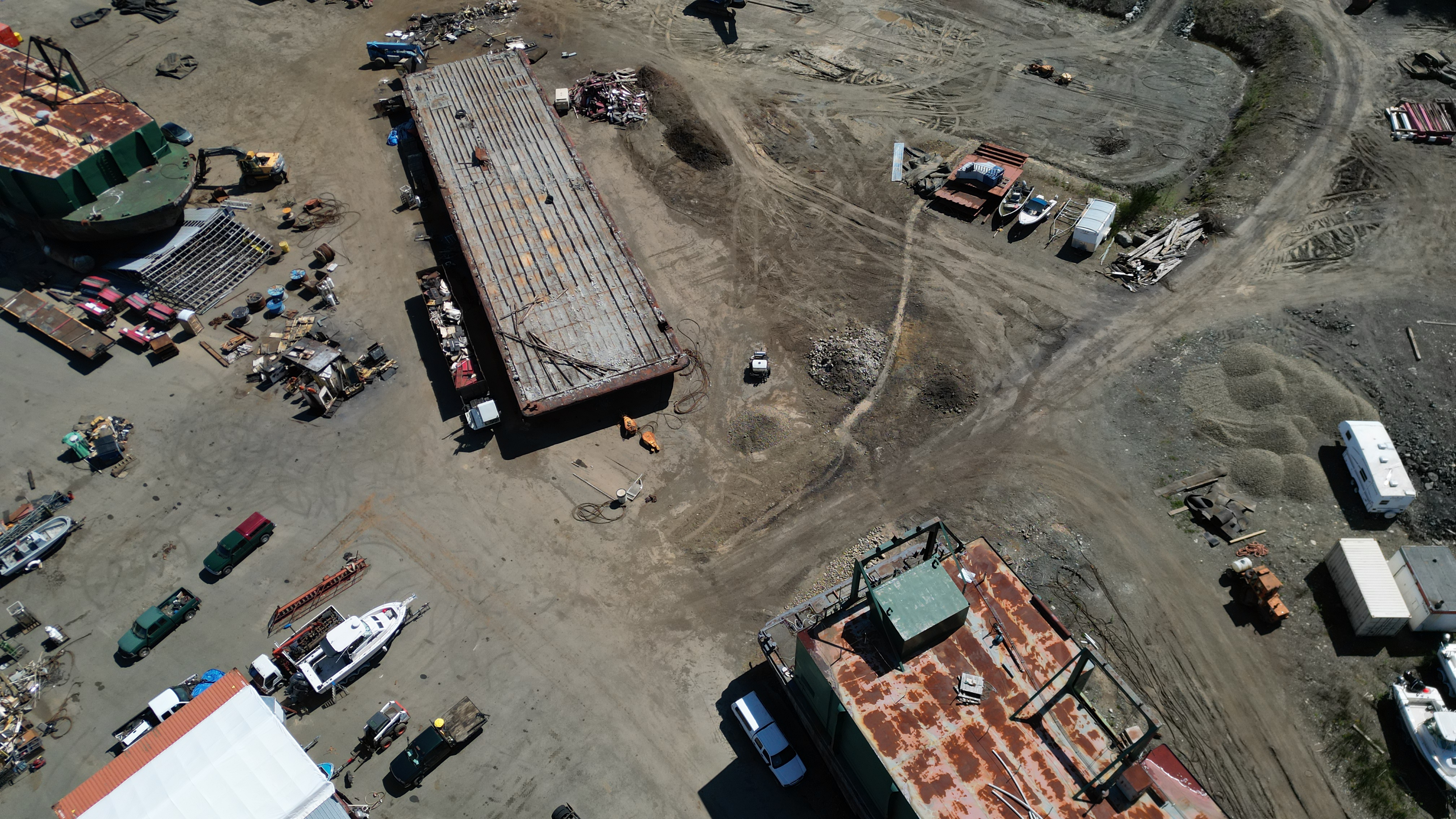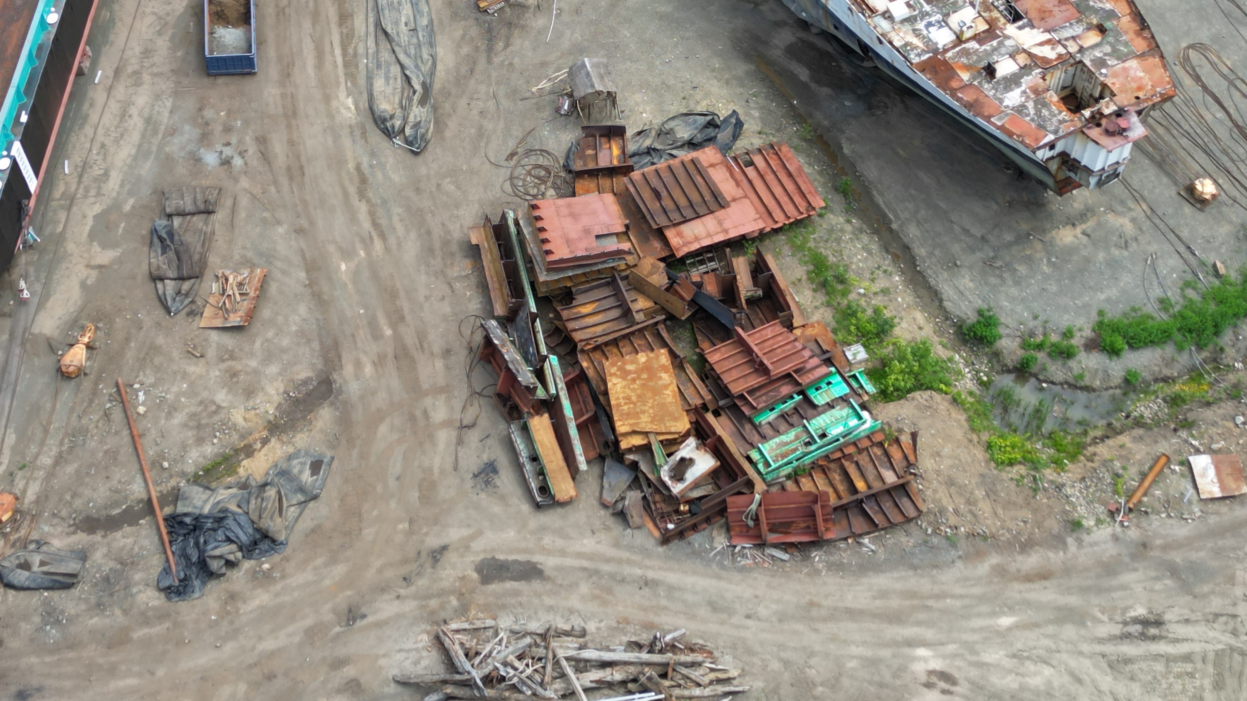 Late 2023. Liquid always flows from under upper green barge. Note concrete blocks and flow of liquid.