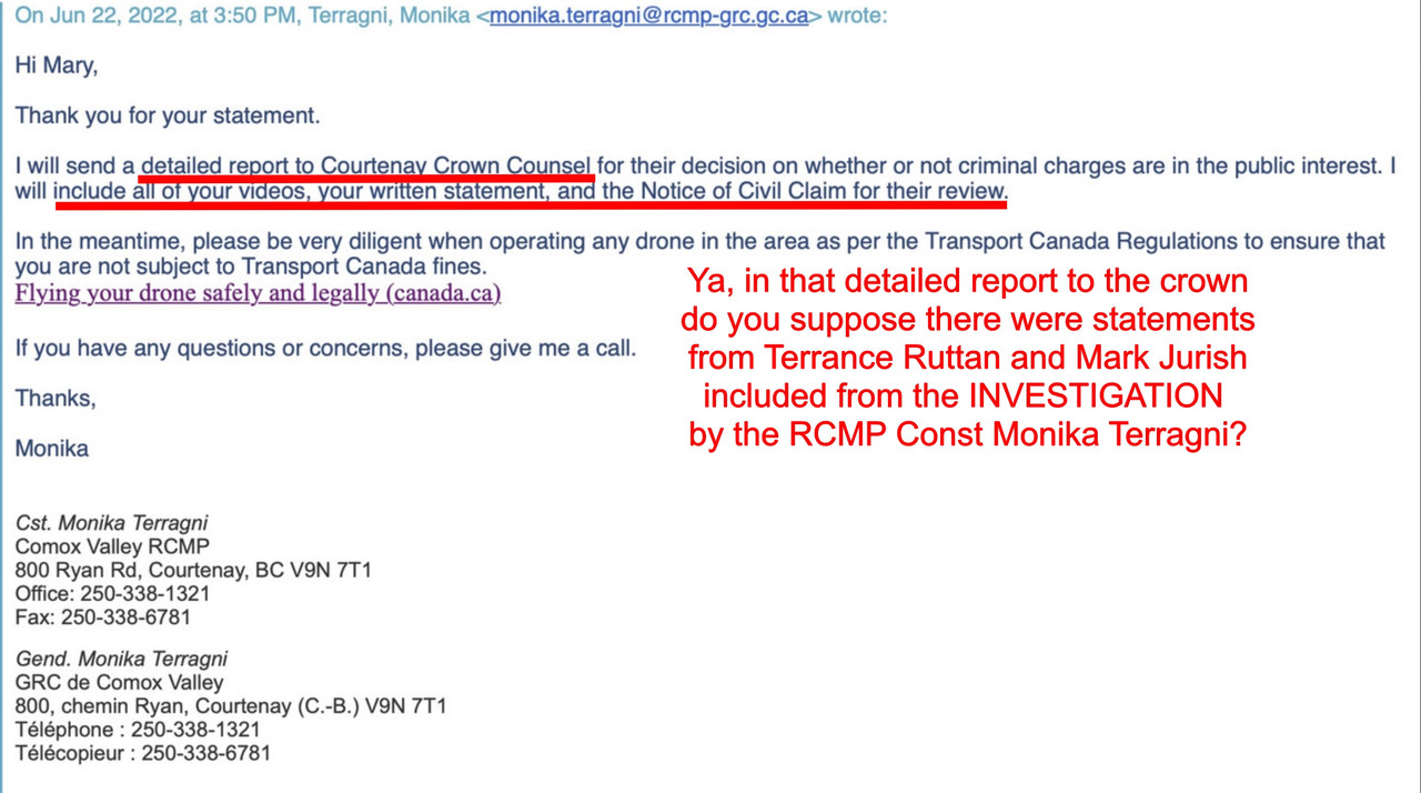I would have been sol if I counted on the RCMP to actually investigate a crime and get justice. They not only screwed up the case but actually made matters worse because they became the protectors and errand boys to thug Jurisich. Remember he stated he made over 20 calls/complaints to the RCMP.