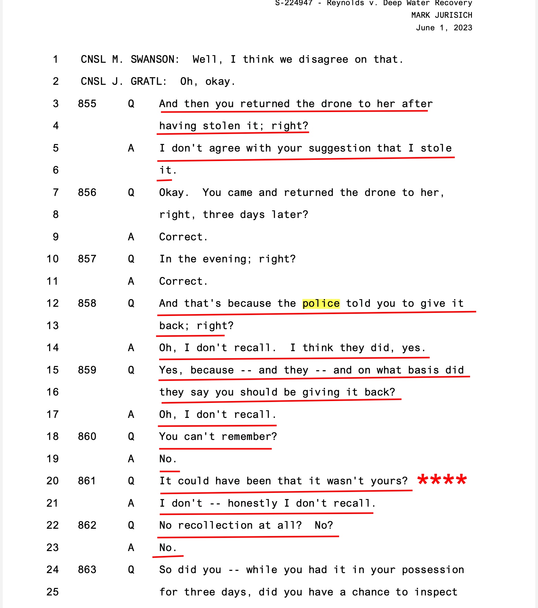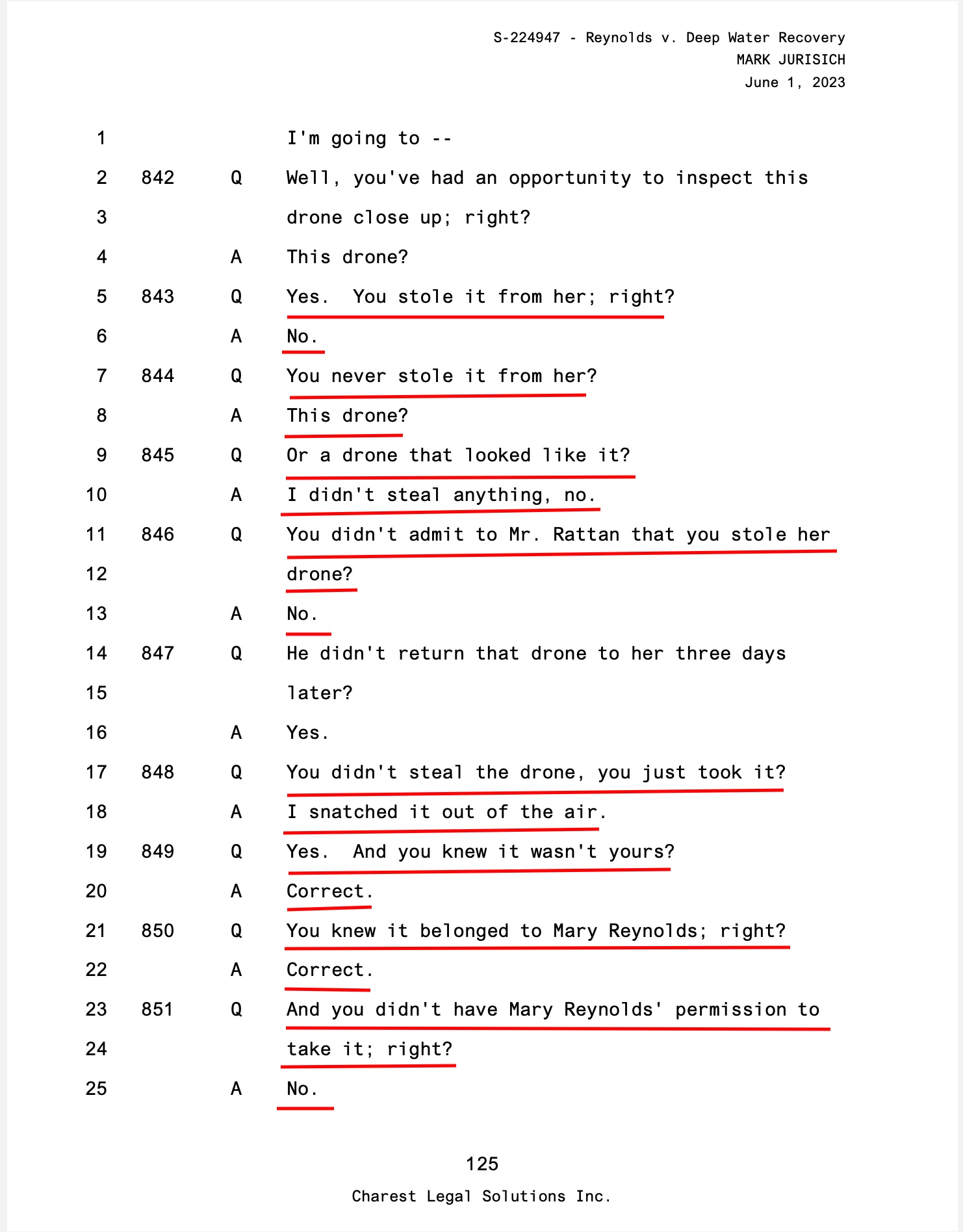 Look how much investigating/questioning it took for Jason Gratl to get Terrance Ruttan to disclose Mark Jurisich stole my property (drone). Ruttan was examined before Jurisich.