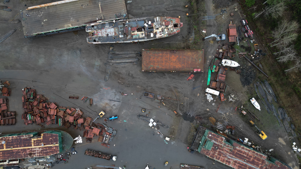 Where is all that runoff coming from under the upper green barge and why does DWR divert it onto soil so that it washes away all the shit from their ship breaking on soil?