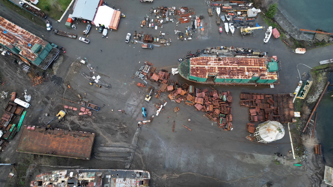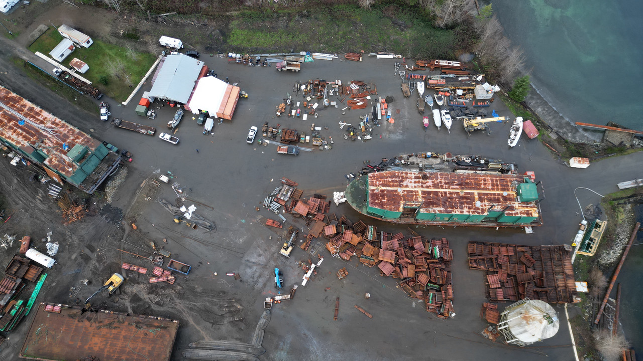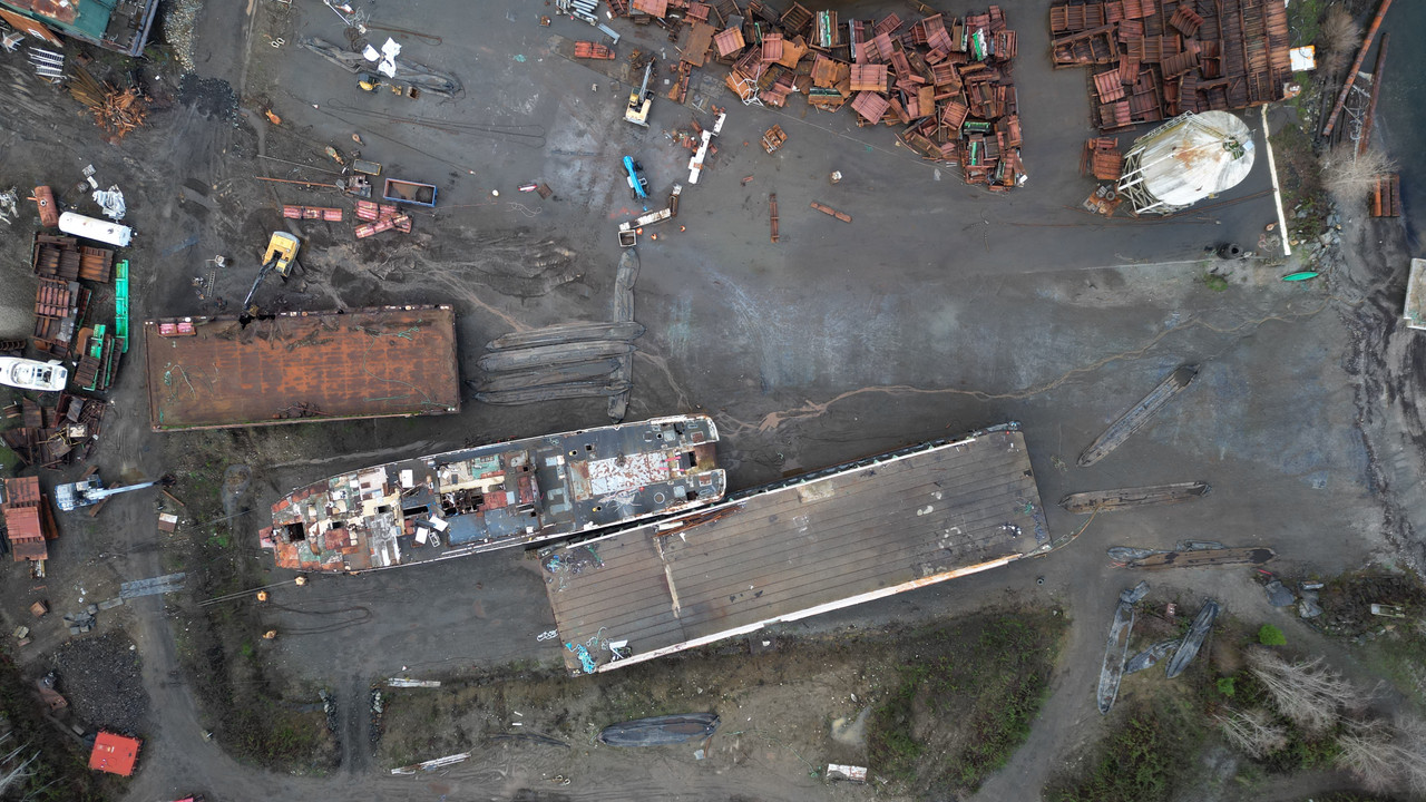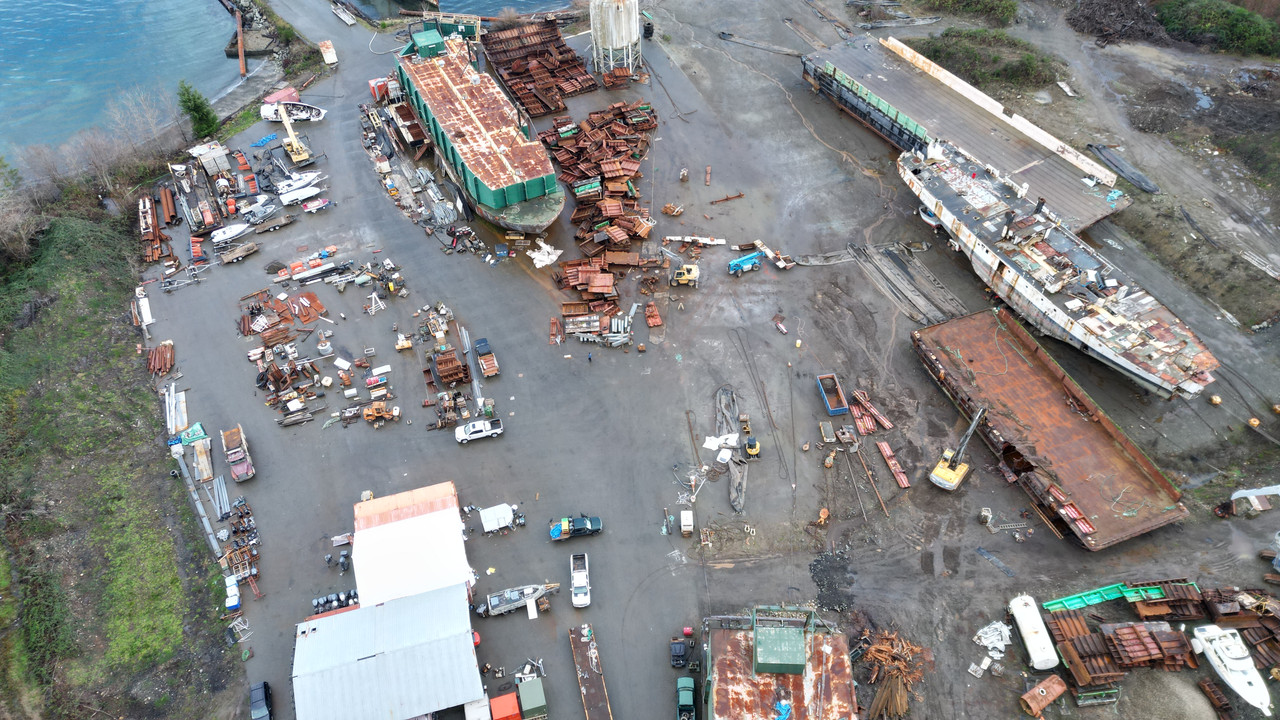 This is a good example of whether the laws we abide by as Canadians are optional because there seems to be no penalty for ignoring/breaking laws by this foreign owned, filthy, polluting ship breaking business. Zero penalties or consequences. They brought this rusty barge up after their foreshore lease was cancelled, so the trespassed. Now they’re ripping apart the rusty barge and grinding all the debris into the soil. Hello – is anyone out there?