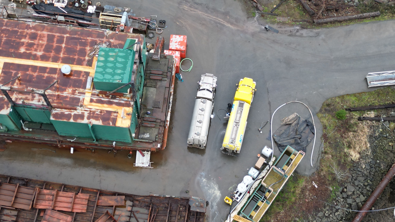 Have no idea what’s on the ground by the 2 tankers parked by the lower green barge. No sheen.