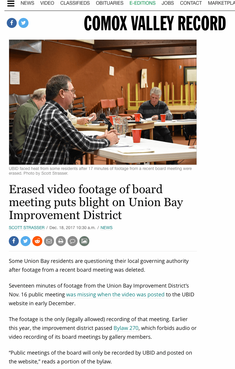 Here’s Jacques claiming the CVRD doesn’t want anything to do with Union Bay as an excuse not to act on the petition.
