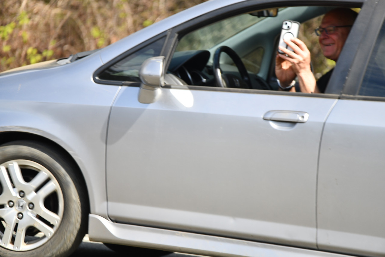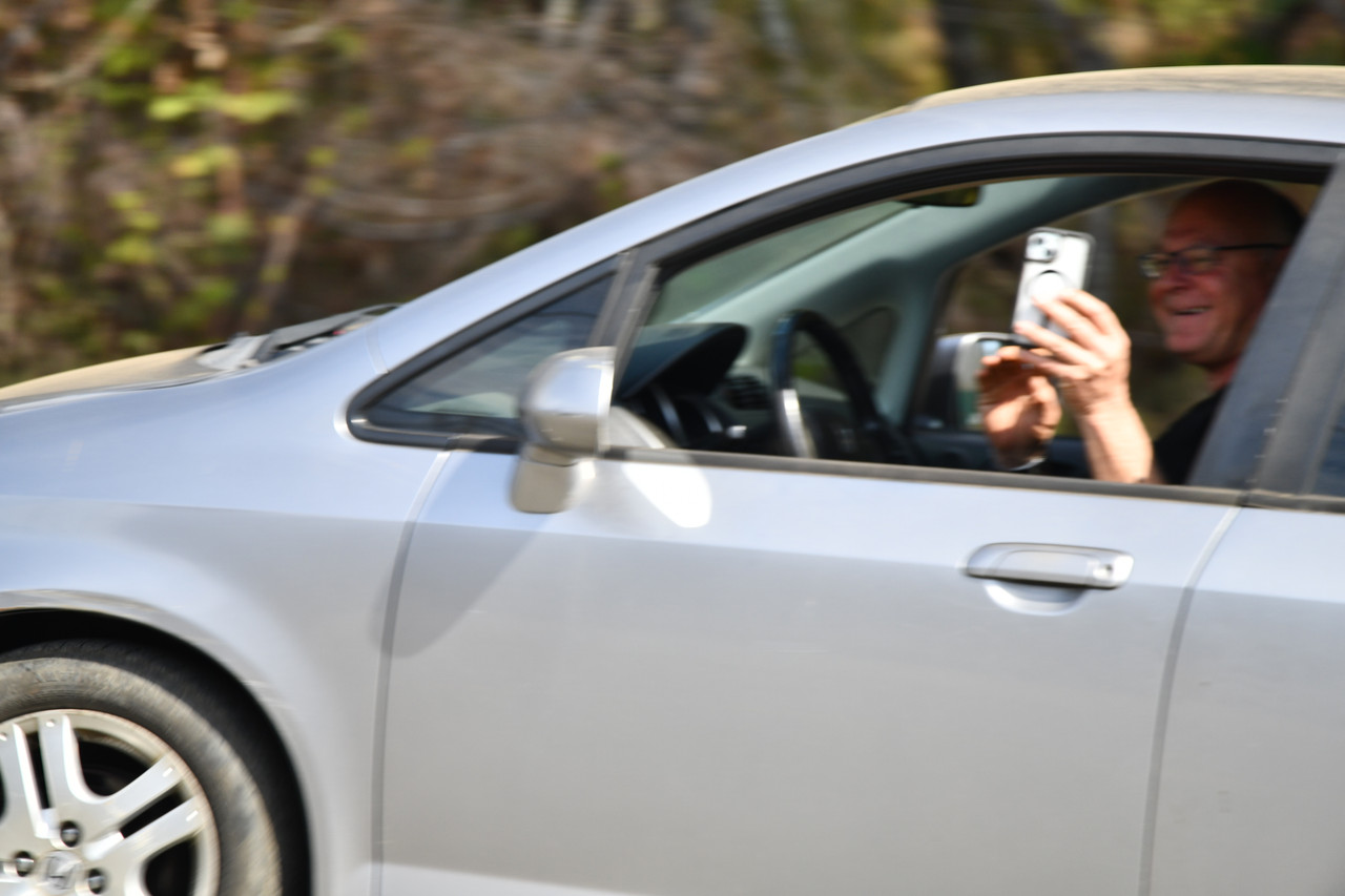 This was April 10/26 with this goof driving on the 4 lanes holding his phone in both hands looking at me with a big shit eating grin on his face. Look how happy he is.
